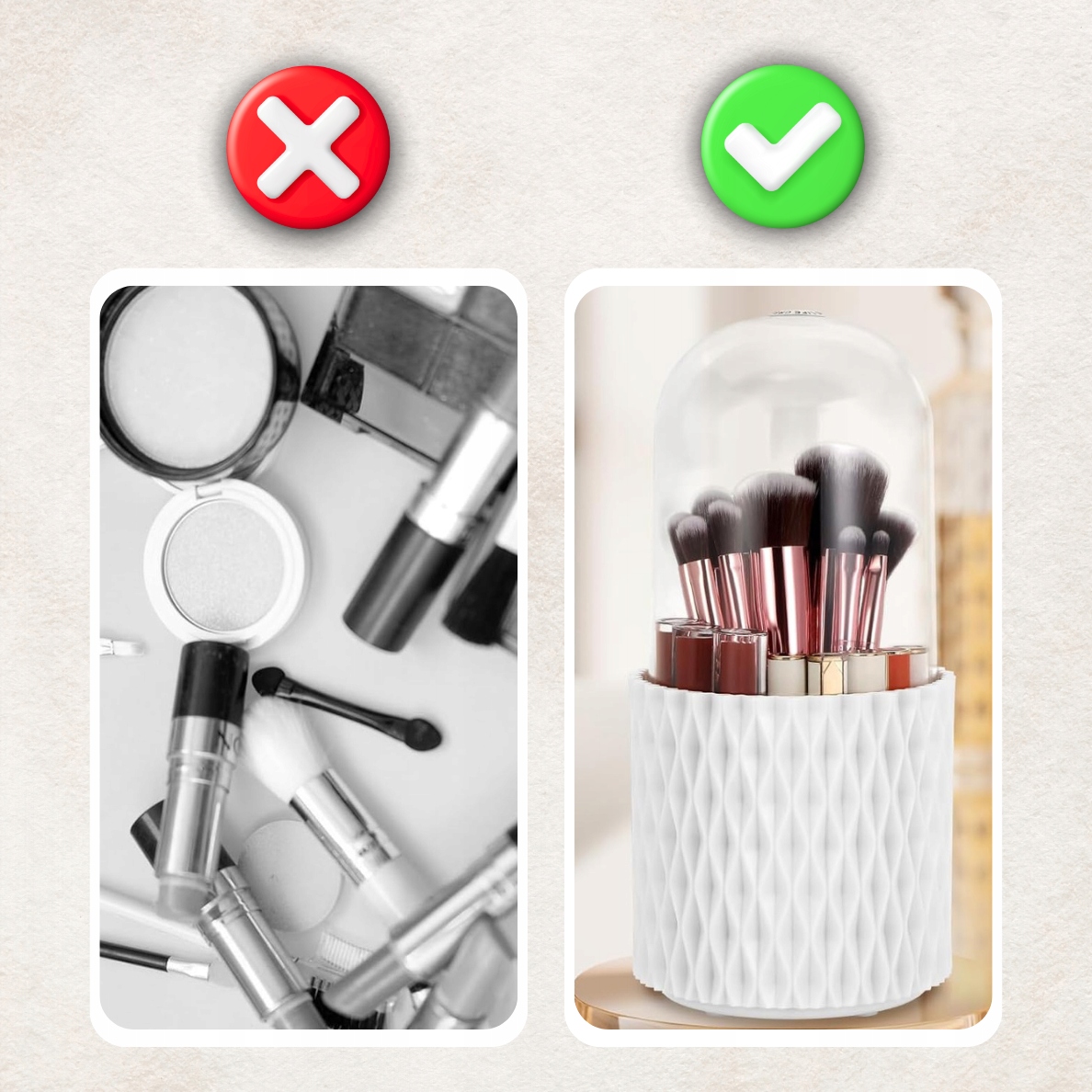 Вращающийся органайзер для кистей для макияжа и косметики — незаменимый аксессуар в любой ванной или спальне, который поможет содержать вашу косметику в порядке. и аксессуары для макияжа.