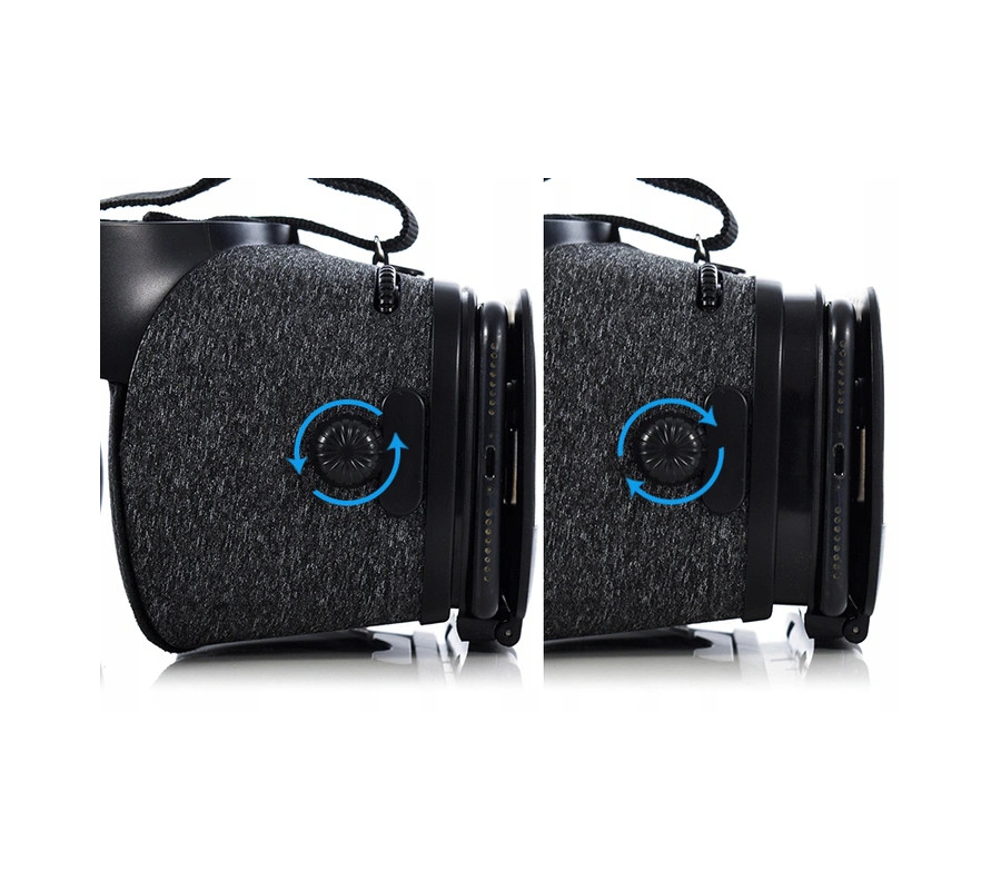 Чтобы получить идеально четкое изображение, поместите телефон в подходящее положение. Для этого с помощью ручек, расположенных на корпусе, отрегулируйте расстояние телефона от линз. В верхней части очков имеется ручка для регулировки расстояния линз друг от друга – ближе или дальше.