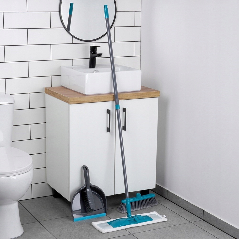 ✅ Сплошная и долговечная - набор из пластика высочайшего качества в сером цвете с бирюзовыми элементами. Щетка и щетка имеют твердую серую щетину. Вставка из швабры изготовлена из микрофибры
