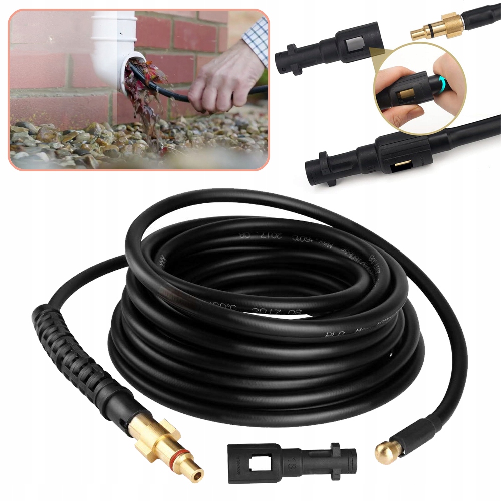 🪠🪠 【Комплект для очистки труб】 Этот шланг специально предназначен для очистки труб. Это может уменьшить упрямую грязь, высвободить желоб и дренаж, выявить дренажные трубы, удалить краску и песок. Он чрезвычайно гибкий, прост в использовании и автоматически втягивается в трубу через сопла, направленные назад. Вам нужна стиральная машина высокого давления. Гибкий и прочный шланг со складками против складок, длина 10 метров к различным применениям, непосредственно соединяется с пистолетом для промывки под давлением