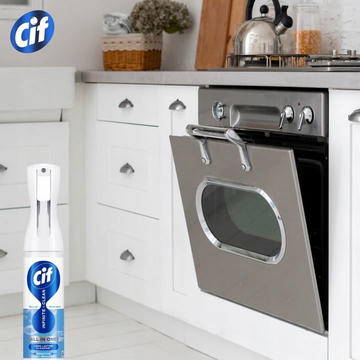 это все еще не все . Действие расширилось благодаря естественным пробиотикам, облегчает удаление загрязнения, обеспечивая чистоту на поверхностях до 3 дней*! Благодаря этому CIF Infinite Clean не только очищает, но и заботится о вашем окружении, обеспечивая длинную свежесть. Этот универсальный спрей чрезвычайно прост в использовании.