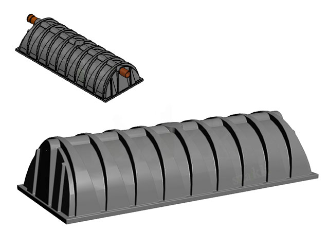 Туннели, истощающие 400 л встряхивание. Туннели уложены. Shak -Dusting System может использоваться как в проницаемых, так и в плохо проницаемых почвах, где уровень грунтовых вод низкий. Преимущество нашей системы состоит в том, что вода распределяется равномерно по всей длине туннеля с дренажной трубой со специальными разрезами.