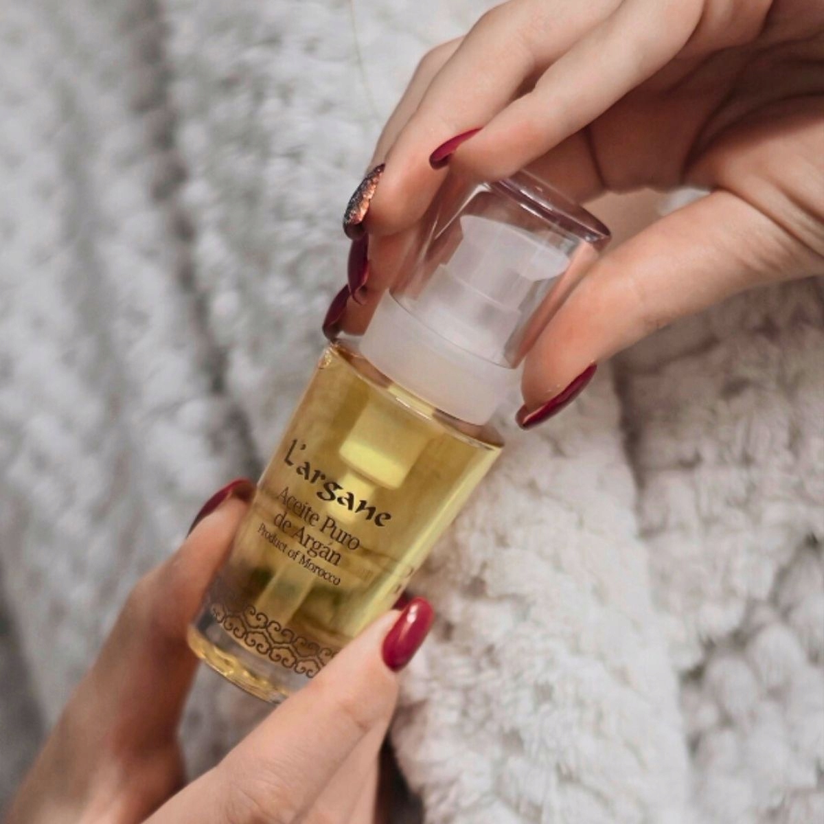 Уход за ногтями: массаж арганового масла в ногтях и кожи вокруг них. Благодаря богатому содержанию питательных веществ, это масло укрепит ногти, питает кожу и позаботится о своей здоровой внешности.