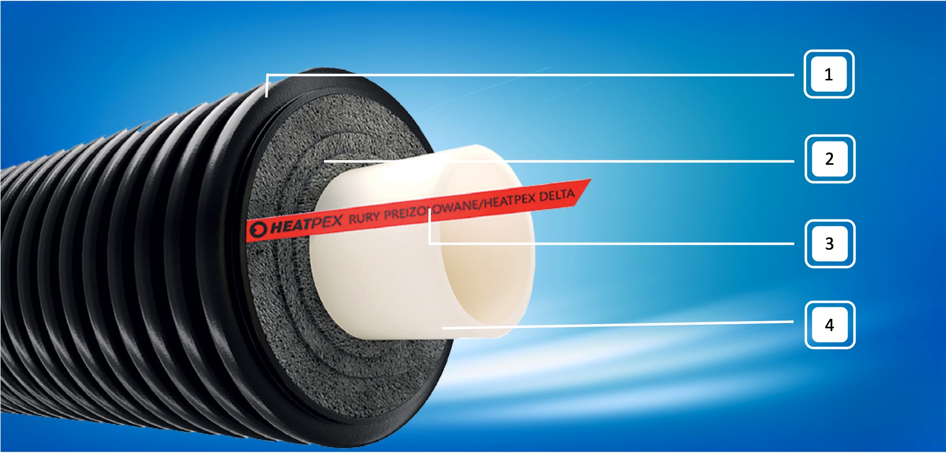 Высокоэффективный изоляционный слой из химически сшитого вспененного полиэтилена минимизирует потери тепла при передаче среды. По этой причине это решение является проэкологическим. Трубы Дельта оснащены индивидуальным решением в виде маркировки с указанием типа трубы и производителя. Для труб Delta PE предусмотрена система обогрева трубопровода, обеспечивающая защиту от замерзания или поддержание заданной температуры среды.