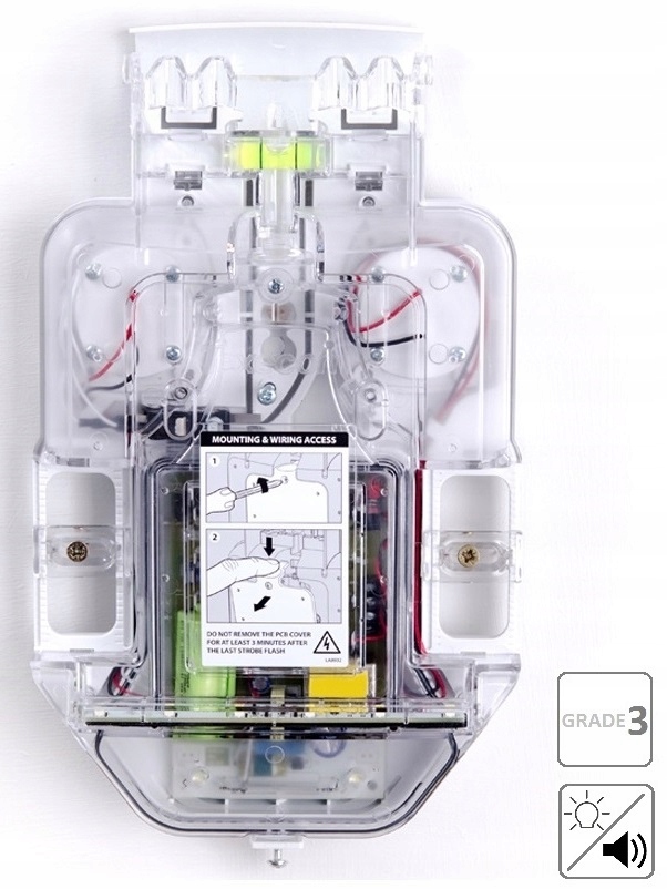 Odyssey Сирена оснащена 2 пьезоэлементами, обеспечивающими интенсивность звука 115 дБ, и светодиодами для оптической сигнализации. Для соответствия требованиям Stage 3 сирена имеет двойную защиту от несанкционированного вскрытия корпуса и от отсоединения от основания. Кроме того, в Odyssey дополнительно сирена может работать в режиме LC, что снижает общее потребление тока. Возможность выбора режимов SAB и SCB также гарантирует низкое энергопотребление при сигнализации тревоги (энергопотребление от встроенного аккумулятора).