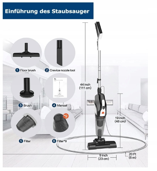 • 【Легкий и простой в использовании】Этот проводной пылесос весит всего 900 г. ручной пылесос и 1,6 кг. В качестве вертикального пылесоса. Легко перемещается одной рукой и прост в эксплуатации. Небольшой пылесос с кабелем длиной 6 м можно брать с собой куда угодно. Просто подключите его к сети, и он начнет работать, так что вам не придется беспокоиться о том, что у вас закончится заряд, потребуется зарядить его или возникнут другие проблемы с аккумулятором.