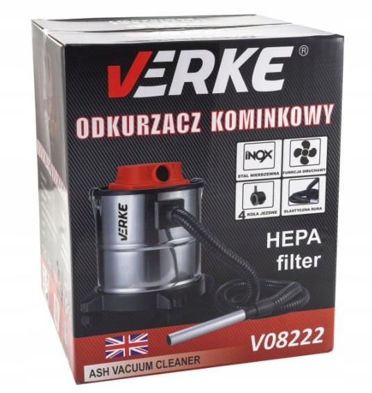каминный вакуумный очиститель - пепел, пыль, мусор - 1200W 20l Verke с фильтром HEPA h1>