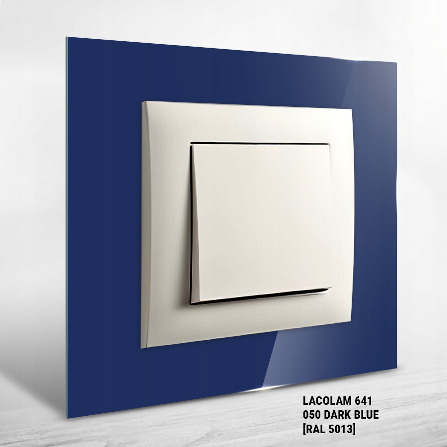 Облицовка стеклянных стен LACOLAM – безопасное многослойное стекло. Преобразите свой интерьер с помощью панели цвета 641-050 ТЕМНО-СИНИЙ