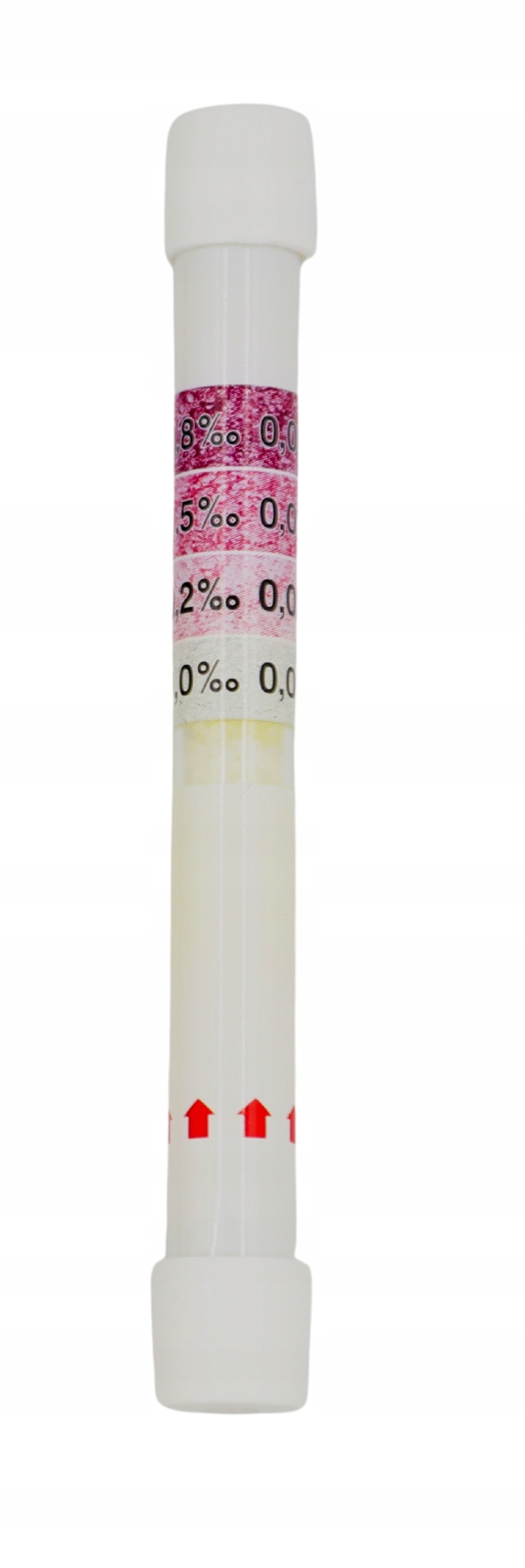 <р>5. Если цвет в середине тюбика меняется с белого на розовый, это означает, что человек находится под воздействием алкоголя. Интенсивность цвета следует сравнить со шкалой на трубке, указывающей количество промилле в выдыхаемом воздухе. Наиболее точные результаты сравнения можно получить при дневном свете.