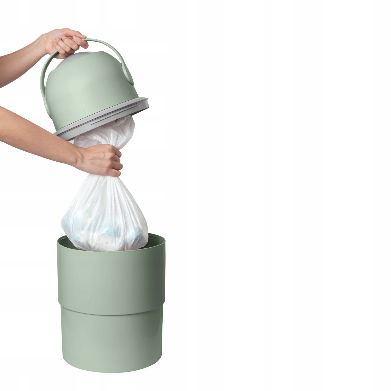 После наполнения мешок легко снимается, что сводит к минимуму контакт с содержимым и исключает риск выхода запаха при выносе мусора. Дополнительным преимуществом является возможность использования корзины для других целей, когда ребенок перестает пользоваться подгузниками - она может выступать в качестве практичной корзины для ванной, контейнера для биологических отходов или решения, поддерживающего гигиену при уходе за пожилыми людьми. Благодаря этому срок его службы увеличивается, а пользователь получает большую ценность.