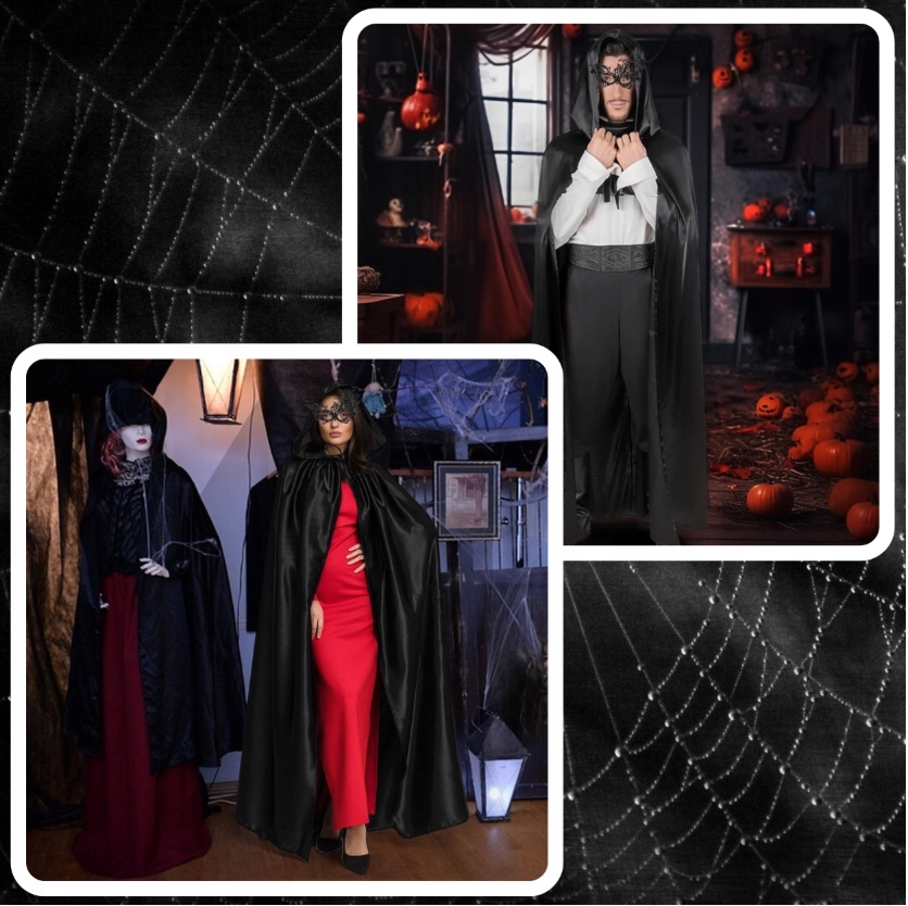 А Накидка длиной 150 см с капюшоном — классический элемент костюма, подходящий ко многим стилям Хэллоуина. Легкий, удобный и эффектный – он станет надежным дополнением любой тематической вечеринки.