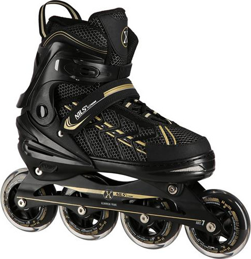 nils extreme, это модель коньков для промежуточных энтузиастов. - это комбинация интересного дизайна с материалами высочайшего качества, которые гарантируют очень высокий комфорт использования. Он был сделан из Евы и бархата и сетки. Благодаря этому вождение будет очень удобным. Кроме того, обувь вентилируется. подшипники класса ABEC7 обеспечивают высокую тягу.