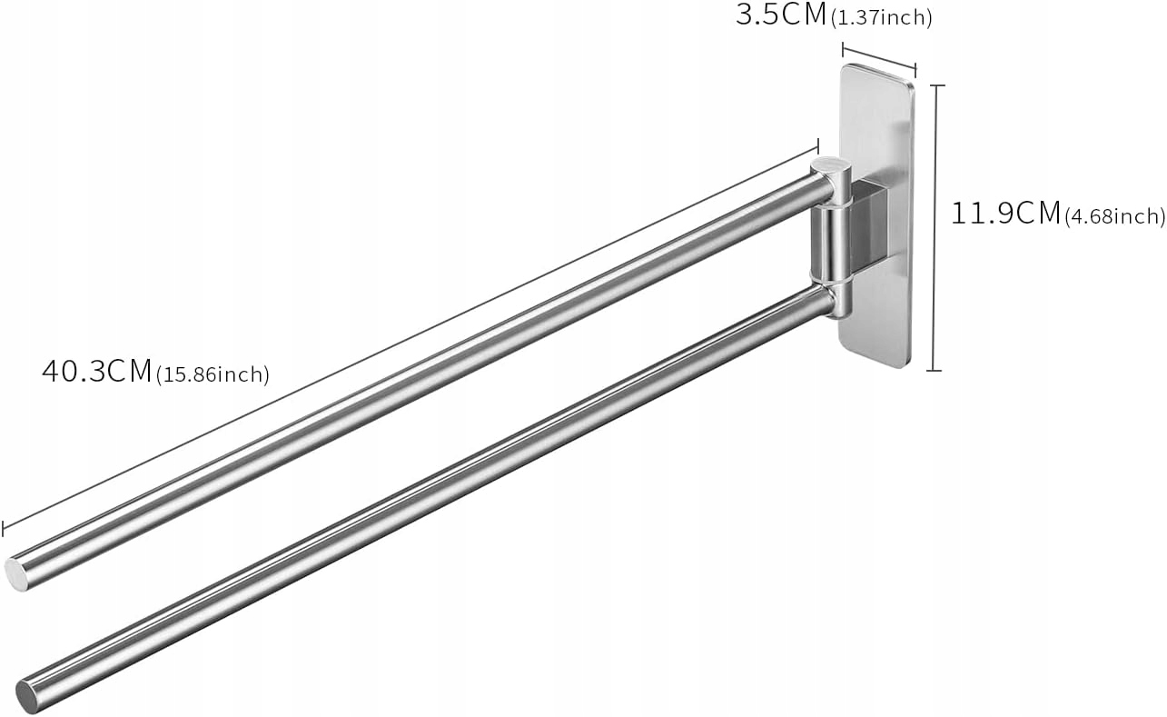 Towel hanger, double, leaning, 304 stainless steel, brushed, towel hanger, without drilling, self -adhesive, bathroom, kitchen, silver, 41 cm h1>