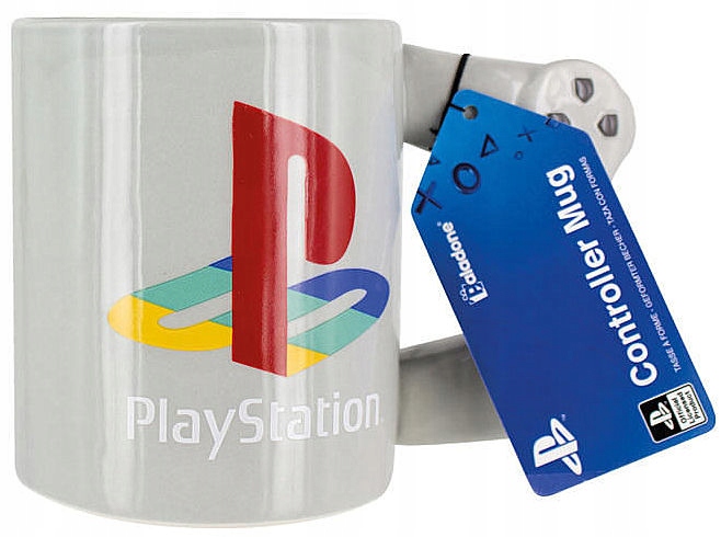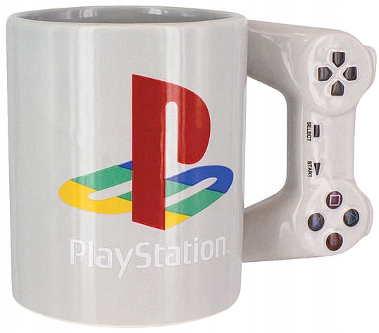 - Кружка PlayStation с мотивом подушечки и символы кнопок от планшета DualShock с ручкой-контроллером оригинальной формы.