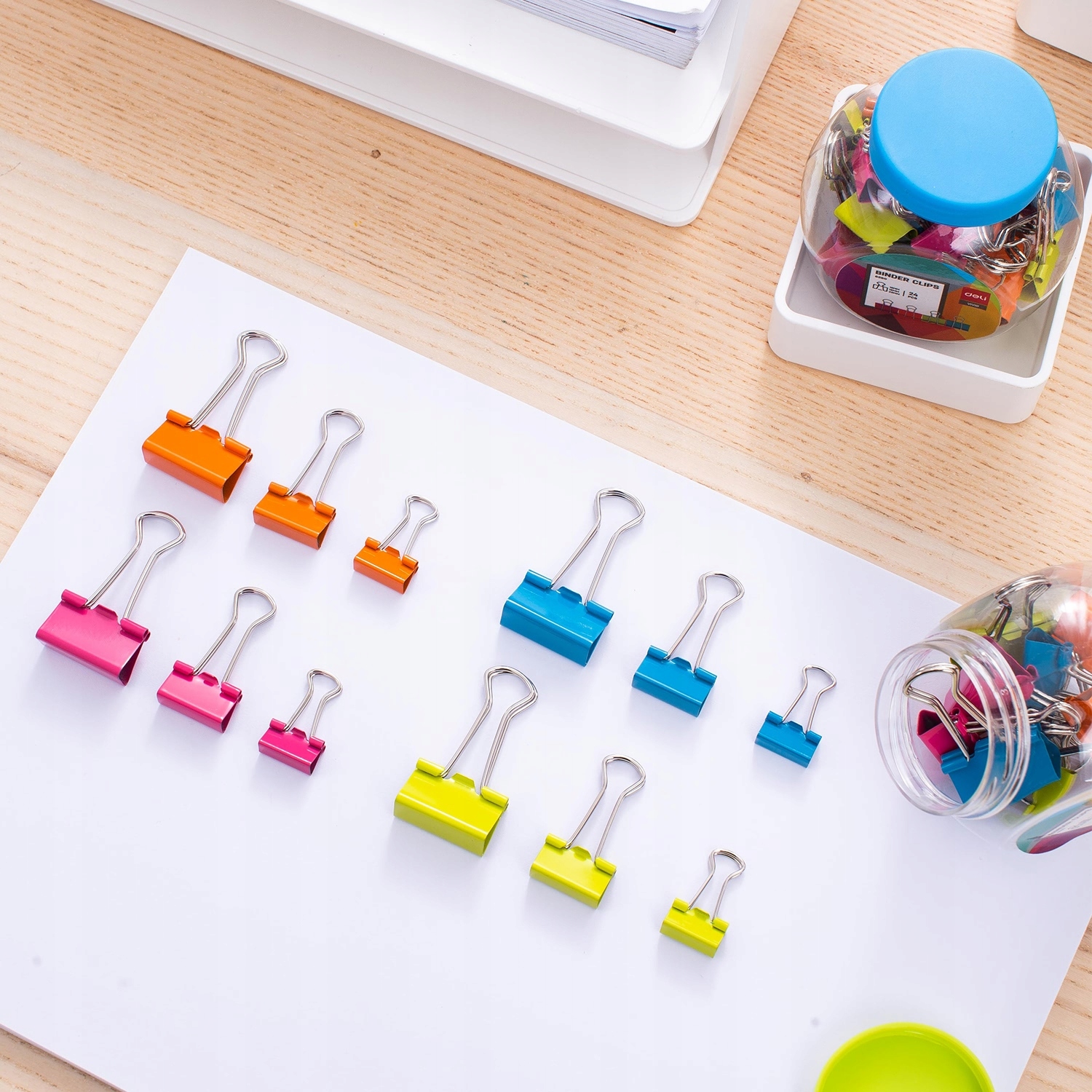 - The size of the clips: 15 mm, 19 mm, 25 mm (2 pieces of each size and color)