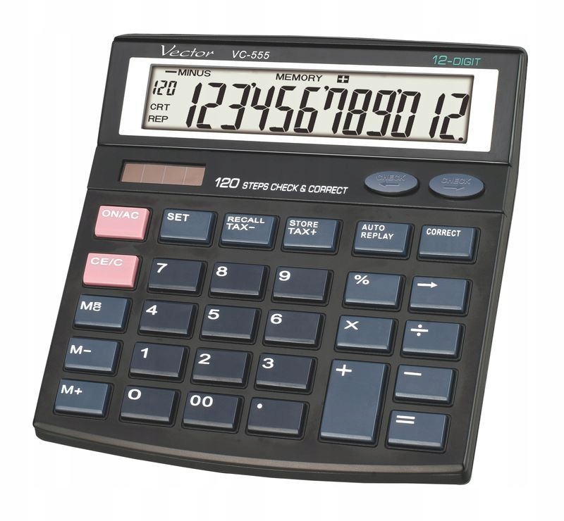 Офисный калькулятор с 12-разрядным дисплеем и двойным блоком питания.