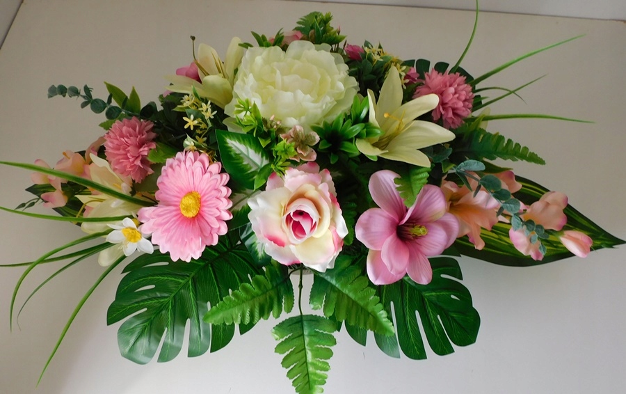 Оформлення букетом, могильний набір, композиція, поенія, рожево-біла