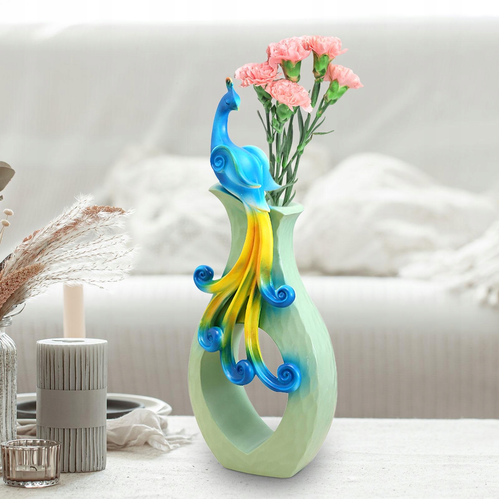 Украшение вазы из смолы павлина для сухих цветов для кабинета гостиной зеленого цвета