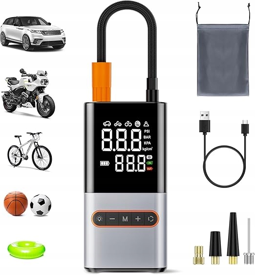 - Максимальное давление 150 фунтов на квадратный дюйм.: быстро и эффективно накачивает автомобильные, велосипедные, мотоциклетные шины и воздушные шары.