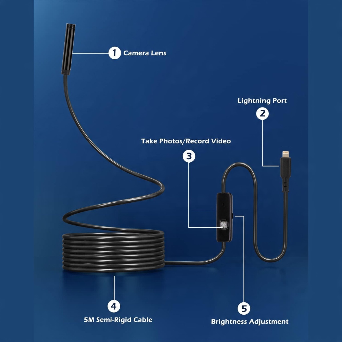 ОГЛЯДНА КАМЕРА ЕНДОСКОП КАМЕРИ IPHONE iPad ДЛЯ ТЕЛЕФОНУ 8LED 5M CE