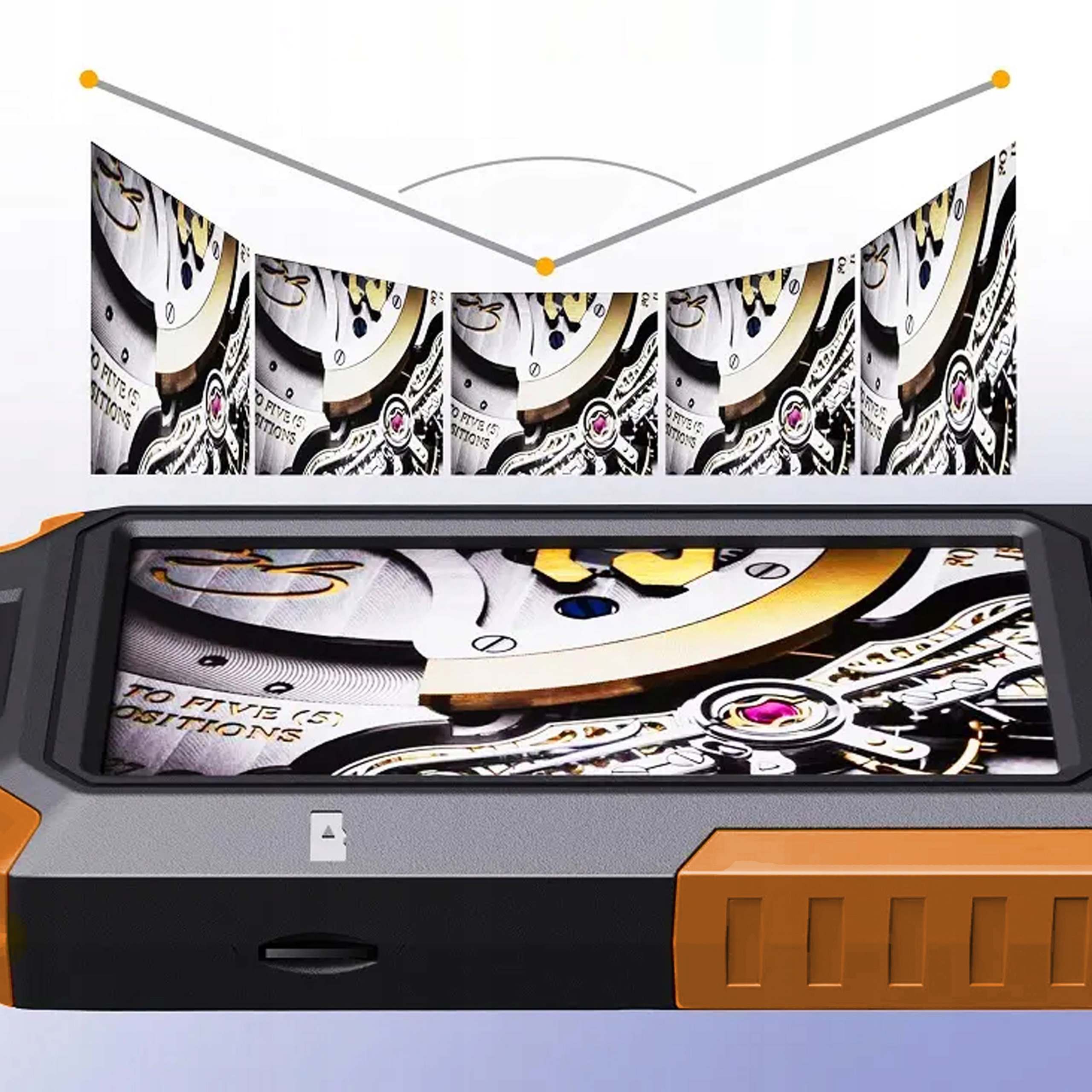 Предлагаемый здесь эндоскоп не является устройством, с которым следует обращаться как с яйцом. Его корпус выполнен из очень прочного пластика, а подгонка отдельных элементов делает это оборудование брызгозащищенным. Края корпуса покрыты силиконом, благодаря чему устройство надежно лежит в руке и не выскальзывает из нее. Так что это оборудование, с которым можно не бояться грязной работы.