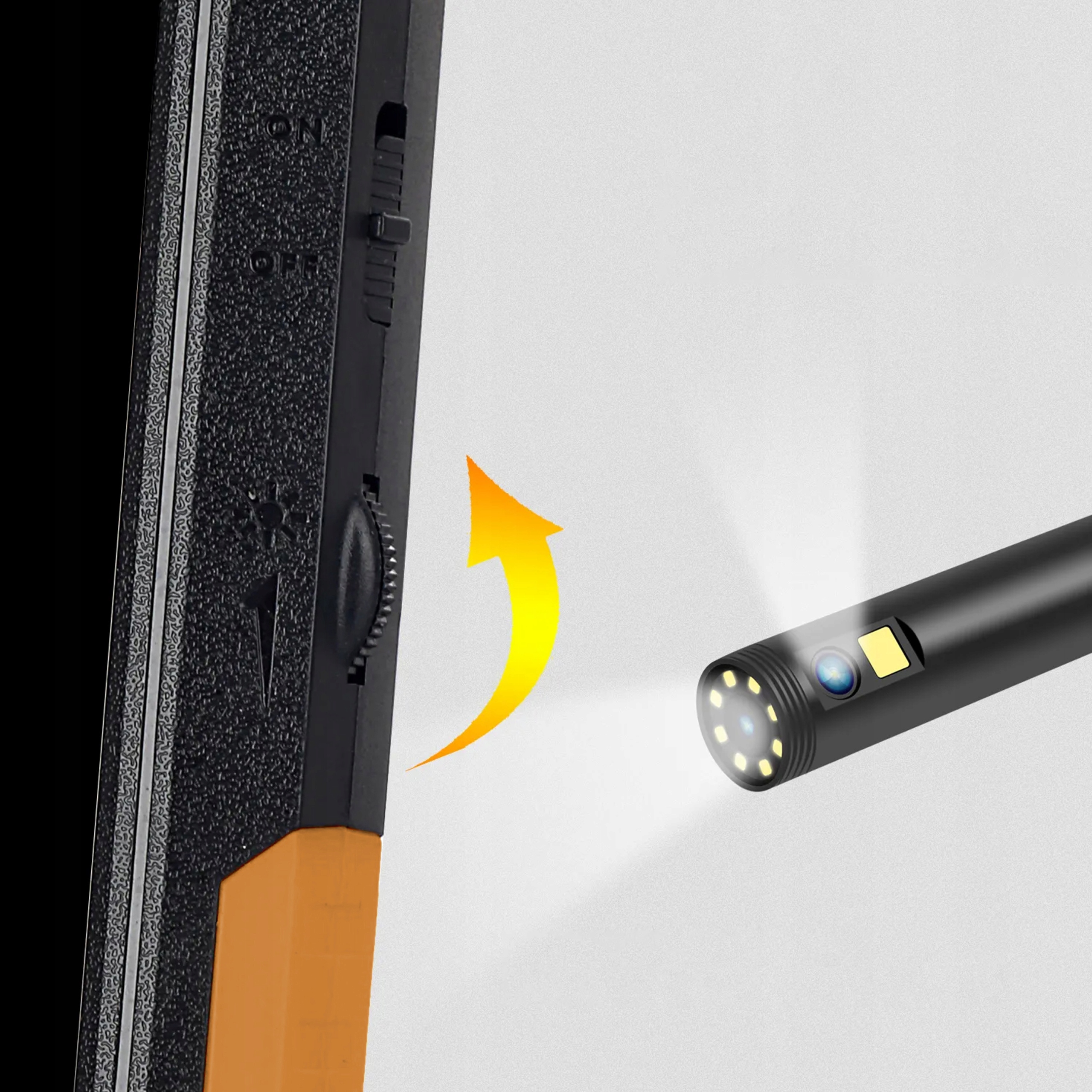 ✔️инновационная эндоскопическая камера, оснащенная светодиодами и панелью регулировки их яркости,