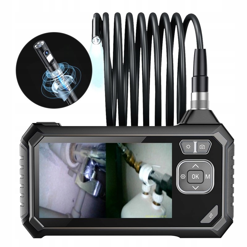 Идеальное решение, работая в уголках и черепах, мы не всегда можем направить камеру проверки на правильный объект. Гнездо PęKnięcie w rurze Wymaga obrócenia kamery co w ciasnym miejscu nie jest możliwe. W Takich Sytuacjach Idealnie spawdzi się kamera wyposażona w funkcję rotacyjną kamery!