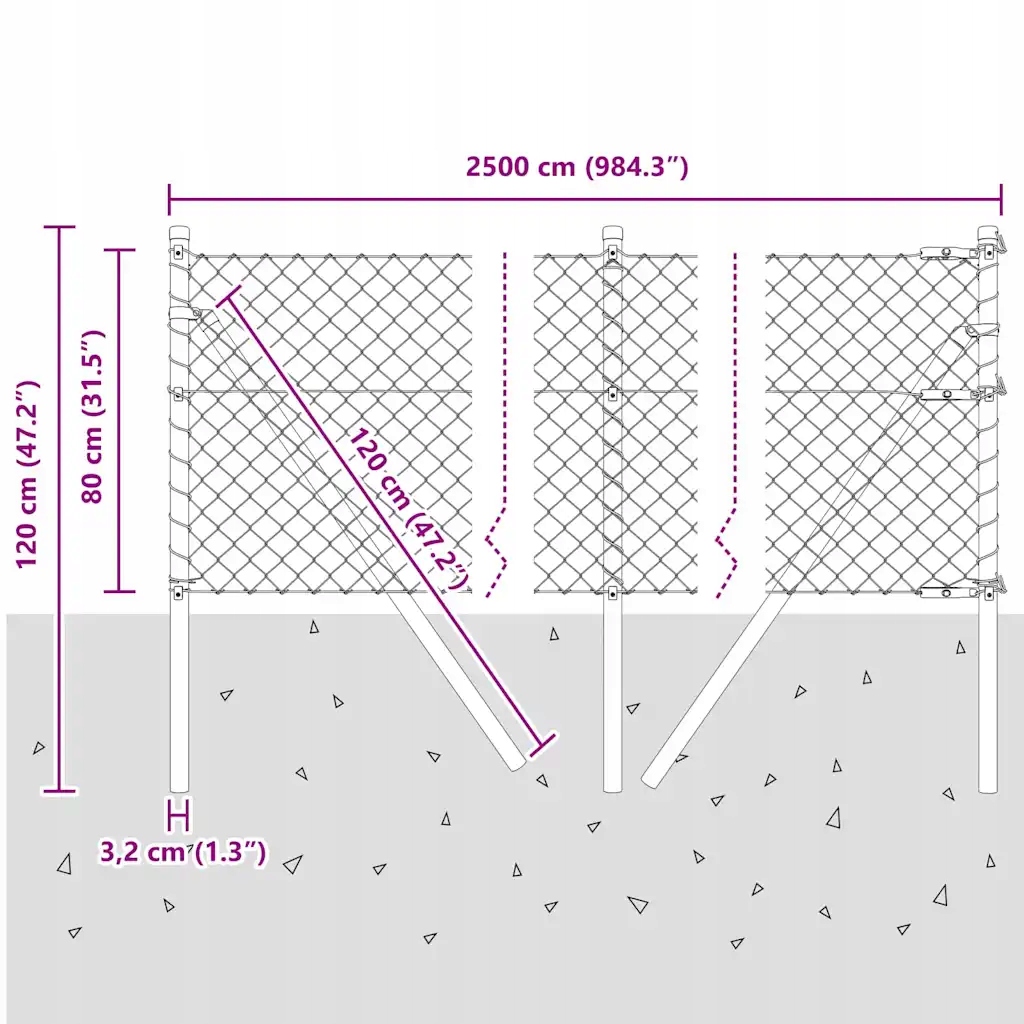 - Общие размеры: 2500 x 3,2 x 80 см (длина x Ширина x) Переживаемая проволока 1 x 25 м, 1 x 80 М проволока напряжения