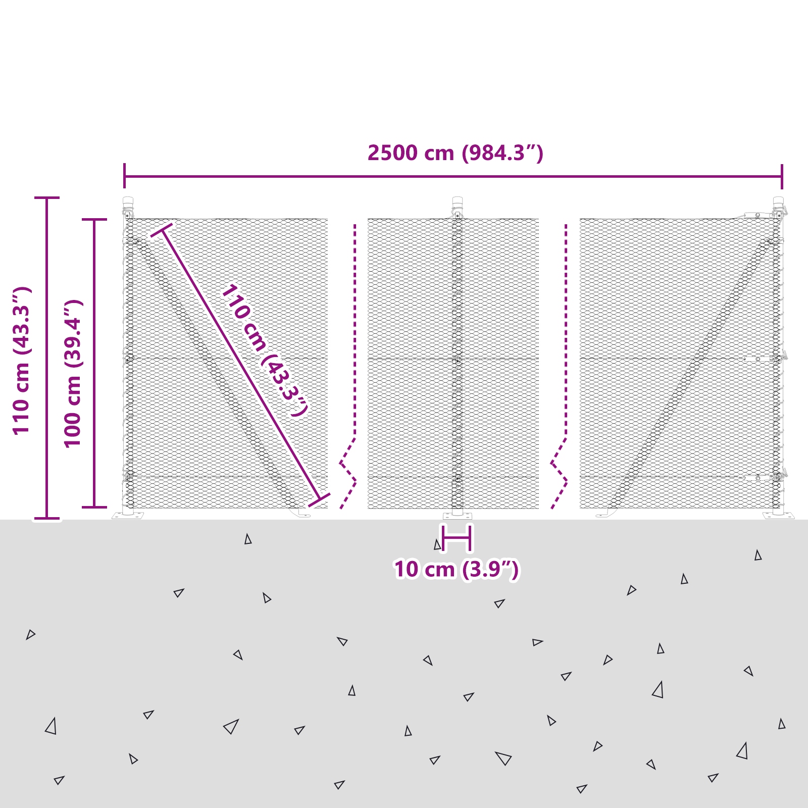 - Полный набор: содержит все необходимые элементы - ограждения, забор сетки и фиксирующие элементы. Требуется сборка, которая лучше всего выполнять у двух человек.