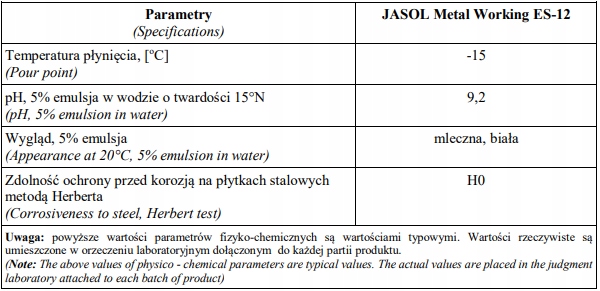 . Масляные эмульсии JASOL Water Metal Working ES-12 следует готовить с использованием воды жесткостью не выше 15°N.