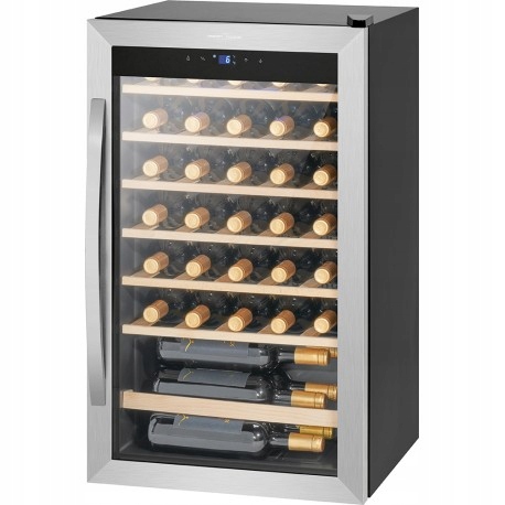 ProfiCook PC-WK 1235 — очень вместительный винный холодильник, который является отличным выбором для всех, кто хочет эффективно хранить и охлаждать вино. Стекло, прозрачная лицевая панель (стекло с УФ-фильтром) с элементами из нержавеющей стали, деревянные полки и внутренняя подсветка делают его идеальным дополнением элегантной кухни или бара.