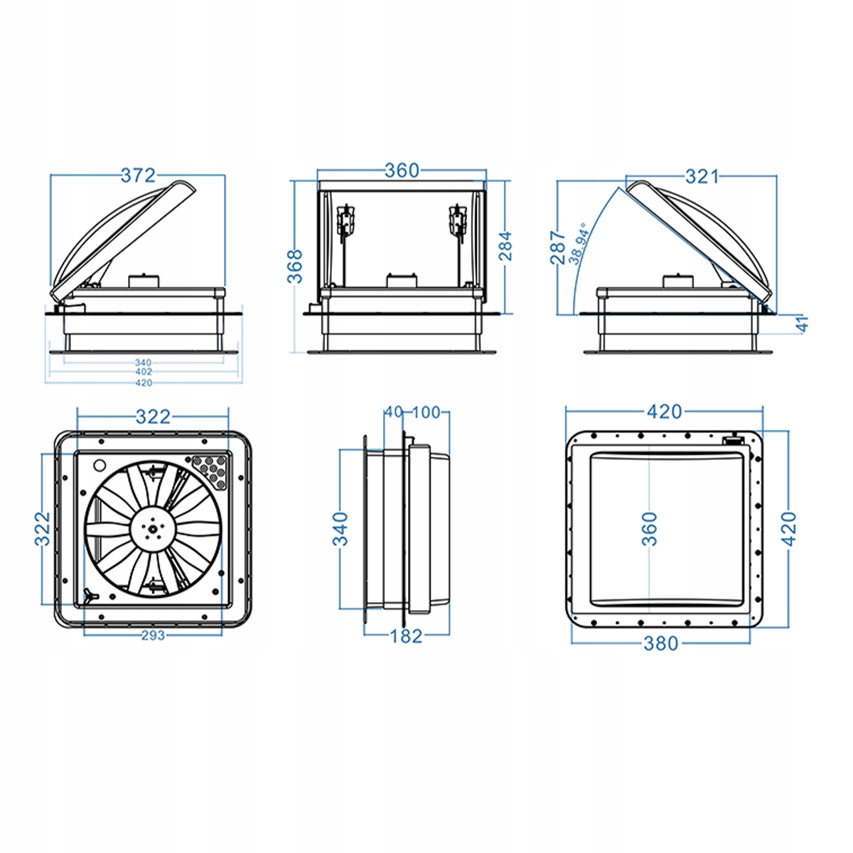 Okno dachowe uchylne 340mm 14" 12V z wentylatorem kampera łodzi przyczepy