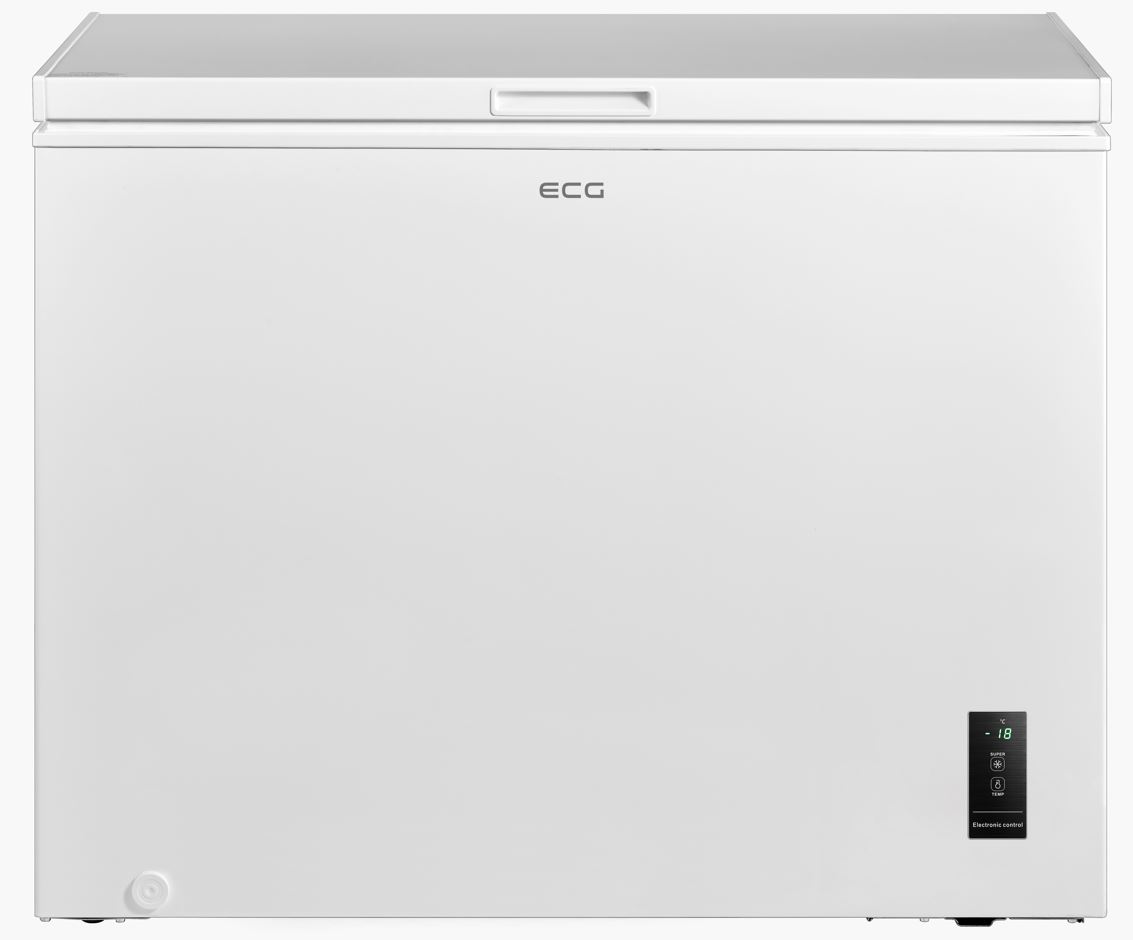Отдельно стоящий морозильный ларь белого цвета с классом энергопотребления E, общим объемом 249 л. ECG EFP 12490 WE имеет функцию быстрой заморозки.