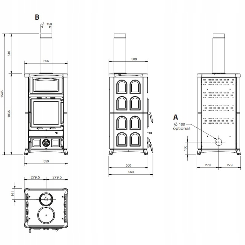 - Размеры отверстия топки (Ш х Ш): 315 х 285 мм