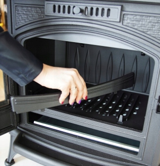 Система холодных ручек позволяет снимать его при топке печи. Благодаря этому он не нагревается и можно легко добавить дров.