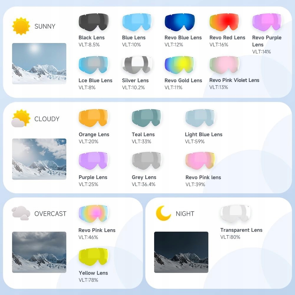 Идеальная вентиляционная система обеспечивает тонкую систему воздушного потока, которая быстро и эффективно приносит свежий воздух и влажность. Профессиональная система вентиляции поможет уменьшить туманность мест и оптимизировать воздушный поток через внутреннюю поверхность объектива. Полные отверстия канала в верхней и дне были созданы таким образом, что тепло от внутренней части объектива была сброшена. Технология увеличивает иммунитет для царапин, 100% УФ -защита. Внутренняя линза изготовлена из долговременного, предотвращающего материал, который с точки зрения качества превышает итальянские линзы
