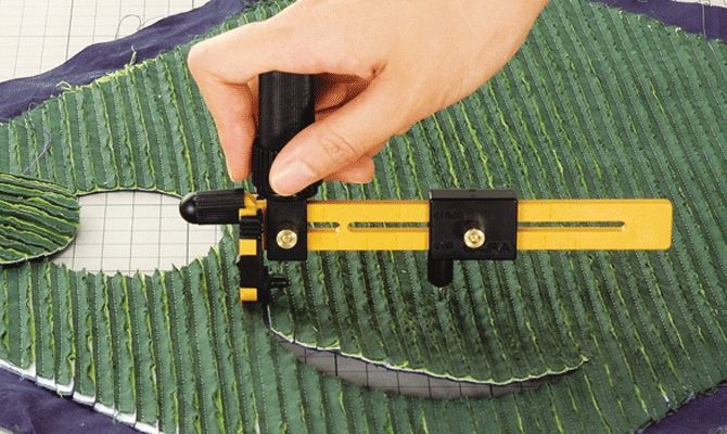 Уникальный инструмент, обеспечивающий превосходное качество и точность для вырезания кругов из ткани, кожи, фольги и т.п. В корпусе установлен так называемый храповой механизм. ручка компаса. трещотка, благодаря которой резка становится очень удобной и быстрой. Конструкция циркуля позволяет плавно регулировать диаметр реза в диапазоне 4-22 см, а сдвижная пластиковая крышка защищает лезвие от повреждений, как и пластиковая крышка, защищающая наконечник циркуля.