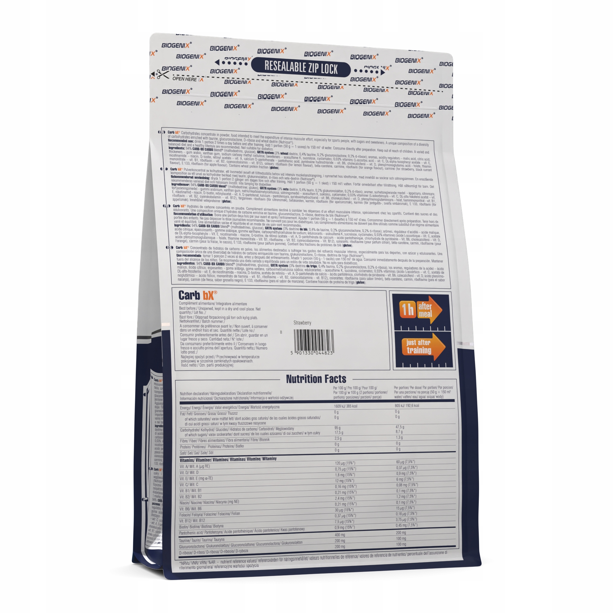 Чтобы добиться разного гликемического индекса, глюкозу и мальтодекстрины чаще всего комбинируют. Однако компания Biogenix сделала значительный шаг вперед, разработав и запатентовав Carb Bx, который представляет собой революционное решение. Препарат содержит специфические углеводы - пентозы (D-рибоза), лактоны (глюкуронолактон), низко- и среднемолекулярные полимеры глюкозы (мальтодекстрины) и высокомолекулярные полимеры (нутриоза), обогащенные добавкой таурина. Это позволило получить отличный, стабильный профиль насыщения крови частицами, составляющими основной источник энергии в организме.