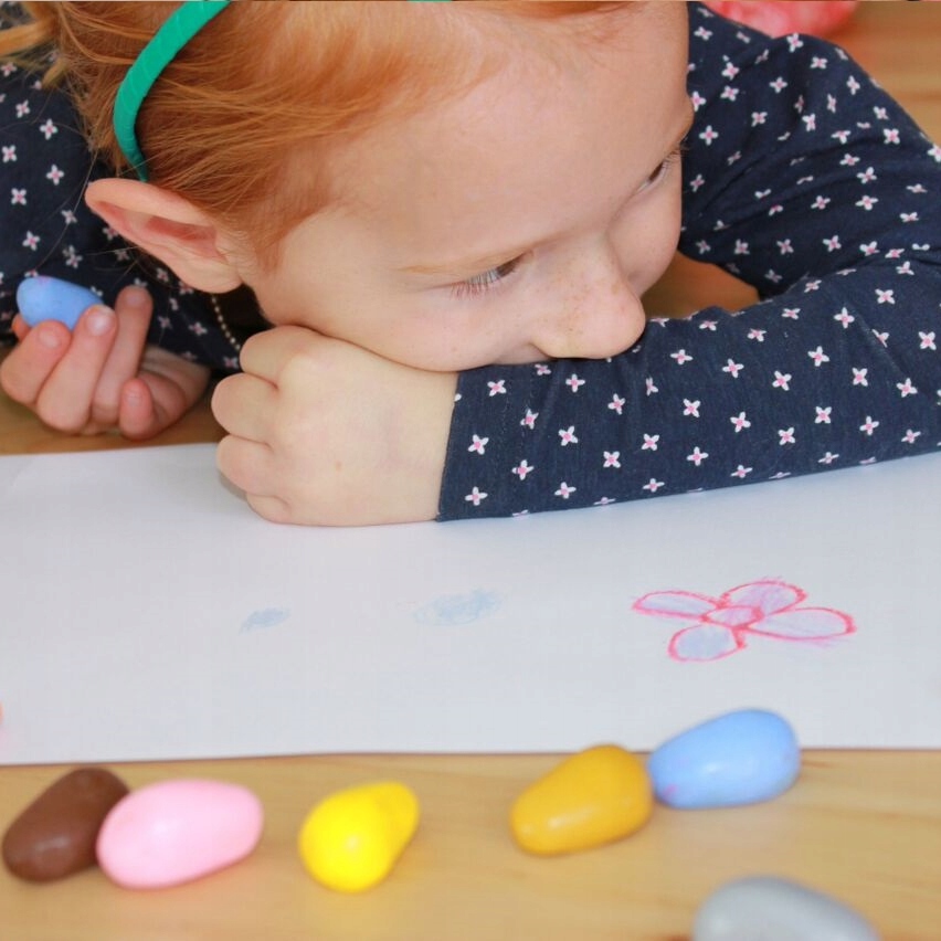 Их овальная форма заставляет малыша рефлекторно держать карандаш правильно, практикуя так называемый хват пинцетом, поэтому Crayon Roks часто рекомендуют учителя и терапевты. «Камешки» натуральные, изготовлены из 100 % соевого воска, что делает их безопасными для окружающей среды.
