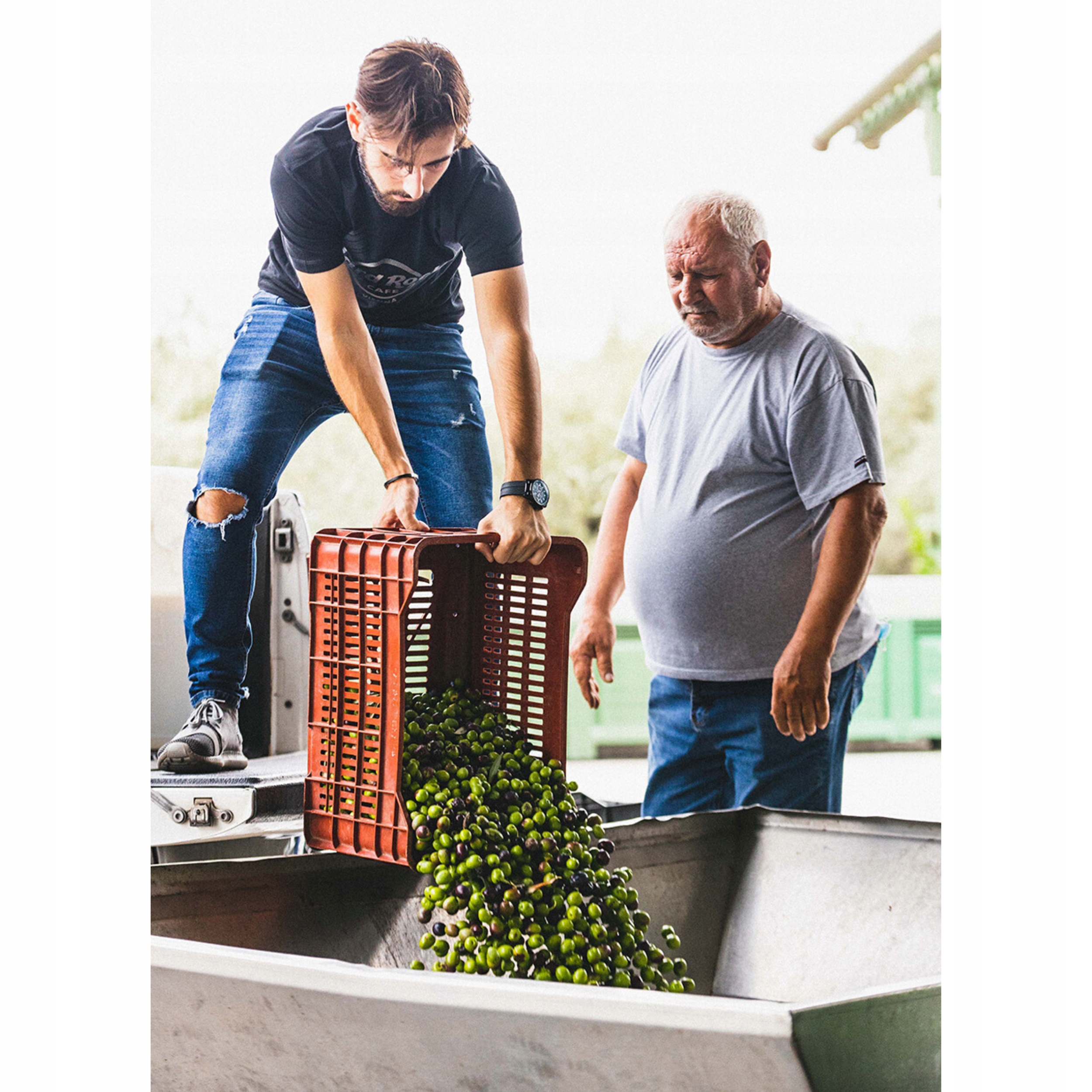 Отжим зеленого оливкового масла происходит только с 25 сентября по 25 октября. Прессуется он механическим способом, всегда ранним утром, чтобы машины не успевали нагреваться от солнца и трения.