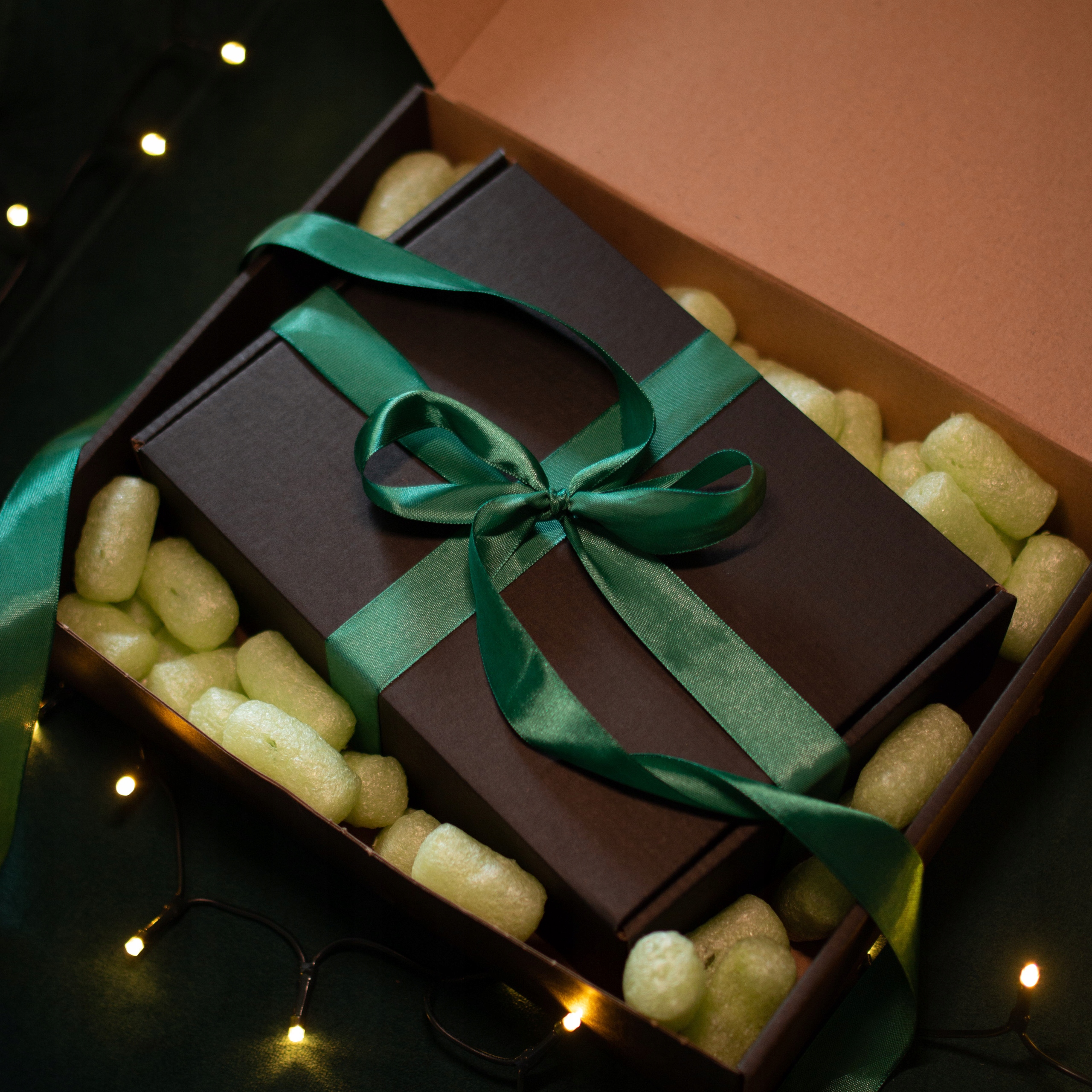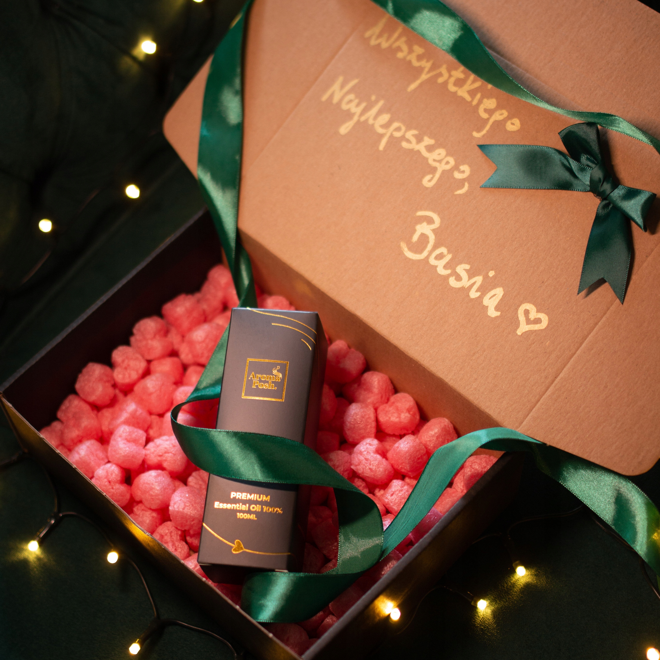 Ваша покупка может быть бережно упакована как подарок в элегантную экологическую подарочную коробку, украшенную розовой начинкой в виде сердечек и перевязанную атласной лентой бутылочно-зеленого цвета. Мы делаем именную, позолоченную надпись, благодаря чему подарок выглядит неповторимо и индивидуально - идеально подходит для праздников, дней рождений, Дня святого Валентина или юбилеев. Мы помещаем все в дополнительную внешнюю (транспортировочную) коробку, чтобы подарок сразу был готов к вручению - без необходимости дополнительной упаковки
