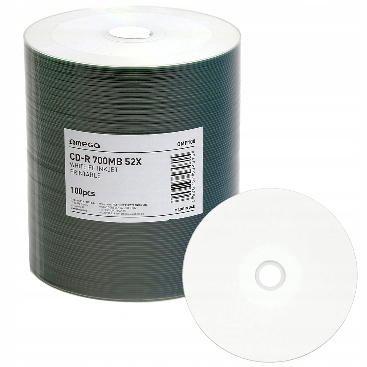 ПЛАСТИНКИ OMEGA CD-R ДЛЯ ПЕЧАТИ, БЕЛЫЕ 700МБ 100 ШТ