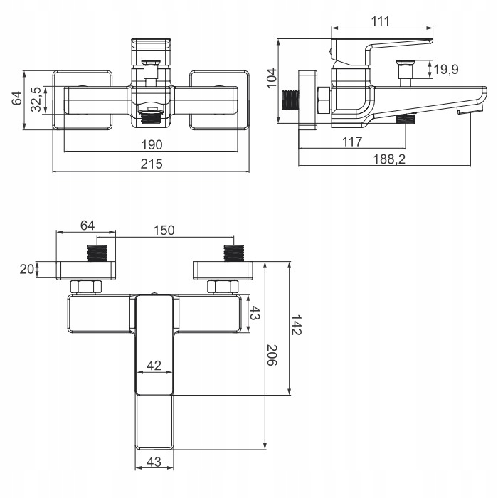 OMNIRES PARMA Bateria umywalkowa stojąca NISKA CHROM (CR)