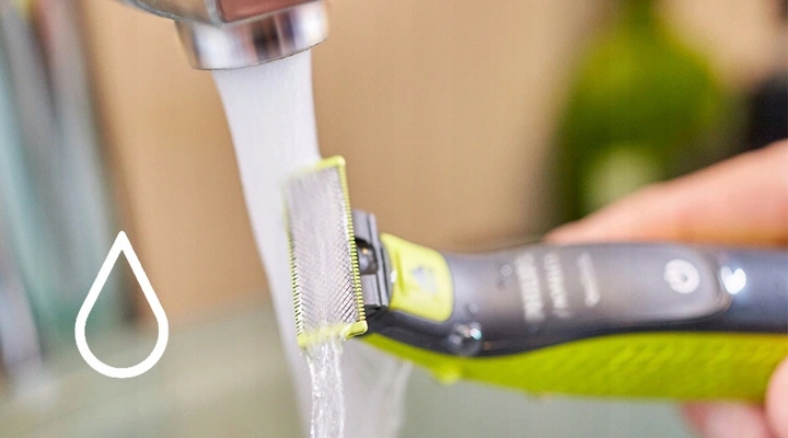 OneBlade водонепроницаема, поэтому его легко чистить, промыв под краном.
