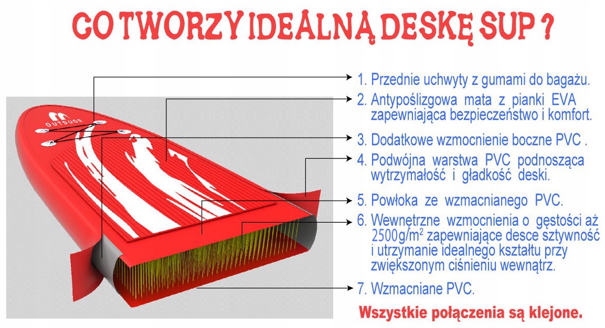 также включает в себя кабель безопасности и сиденье SUP. Наши доски были дополнительно оснащены ручками для установки сиденья.