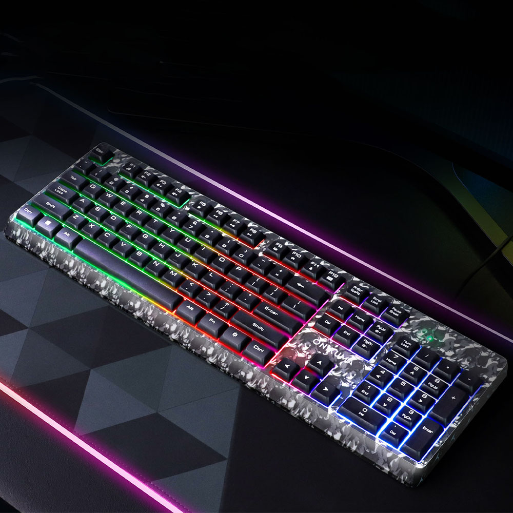 Onikuma G50 Camouflage — это клавиатура, которая позволит вам насладиться исключительной плавностью и точностью как во время требовательных игр, так и в повседневном использовании компьютера. Его игровой характер подчеркивает впечатляющая RGB-подсветка, доступная в нескольких режимах. Дополнительно он оснащен мультимедийными кнопками. Клавиатурой чрезвычайно приятно пользоваться благодаря профилированным клавишам и противоскользящим ножкам. Благодаря минималистичному дизайну изделия вы можете быть уверены, что оно идеально поместится практически на любом столе.