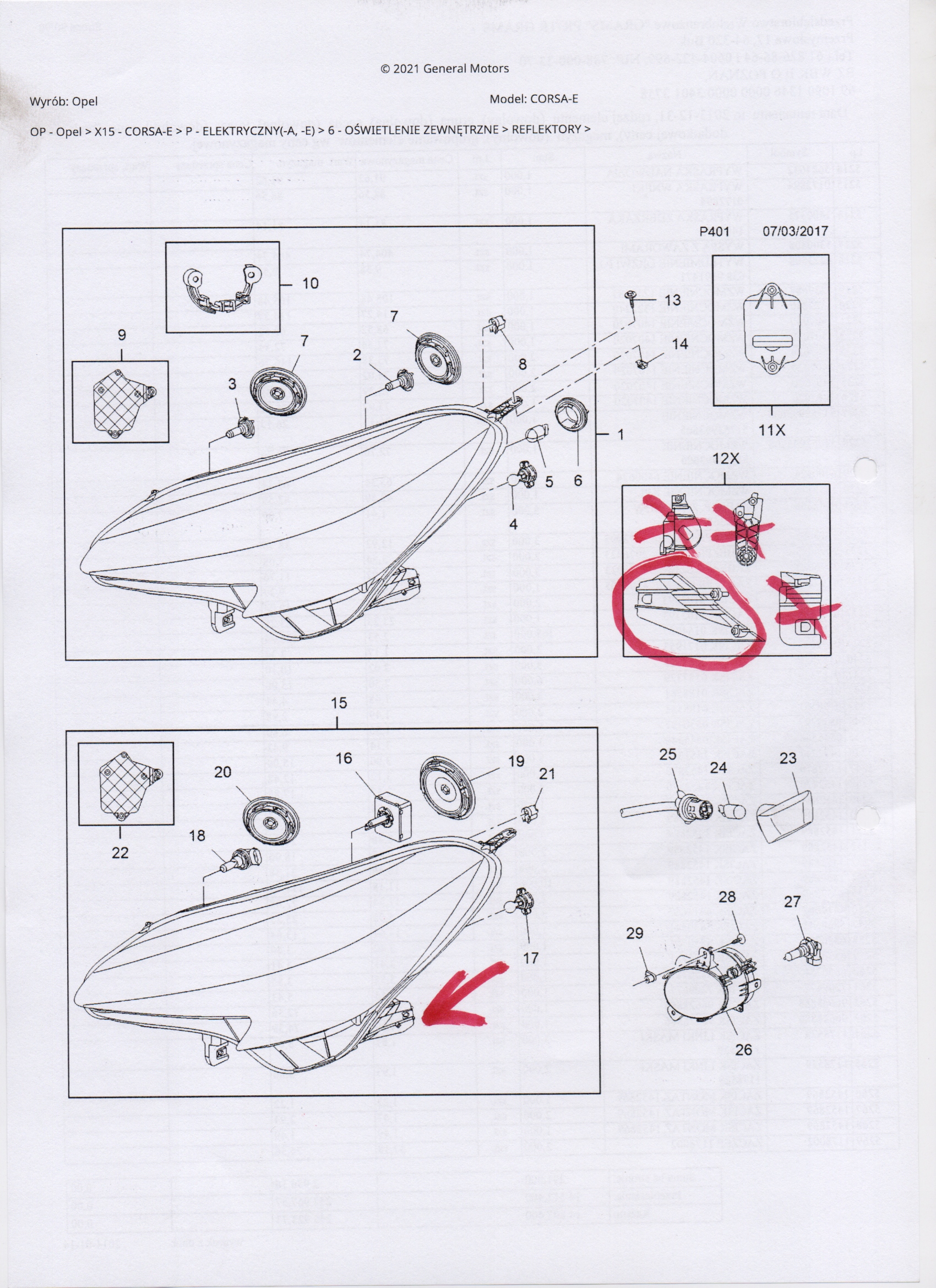 OPEL CORSA E РЕМКОМПЛЕКТ ФАРИ ПРАВ