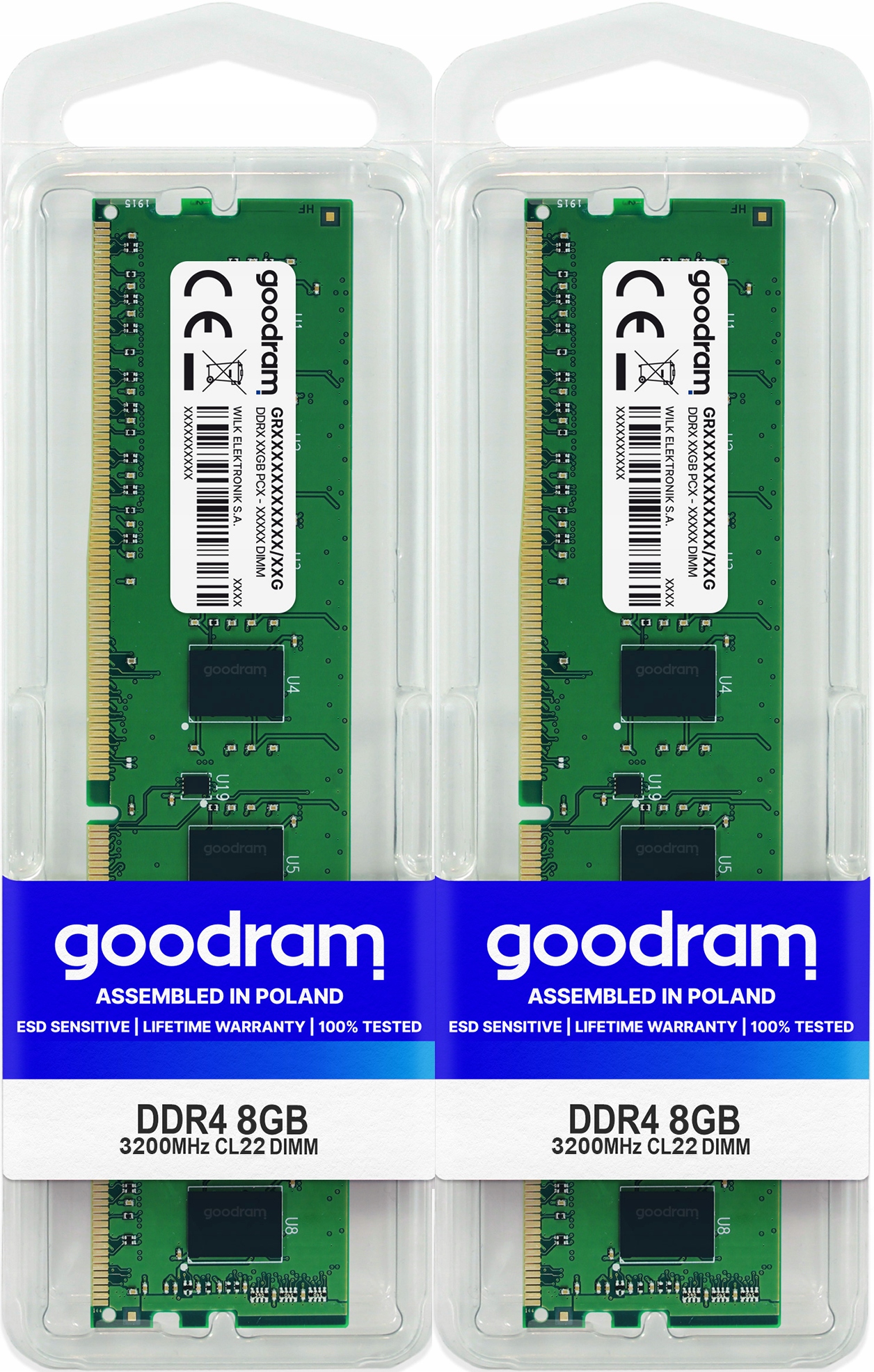 GOODRAM DDR4 Оперативная память объемом 16 ГБ (2x 8 ГБ). Эти кости предназначены для использования в компьютерах ПК, поскольку у них есть разъемы DIMM. Рабочая частота памяти составляет 3200 МГц. Задержка цикла равна 22.