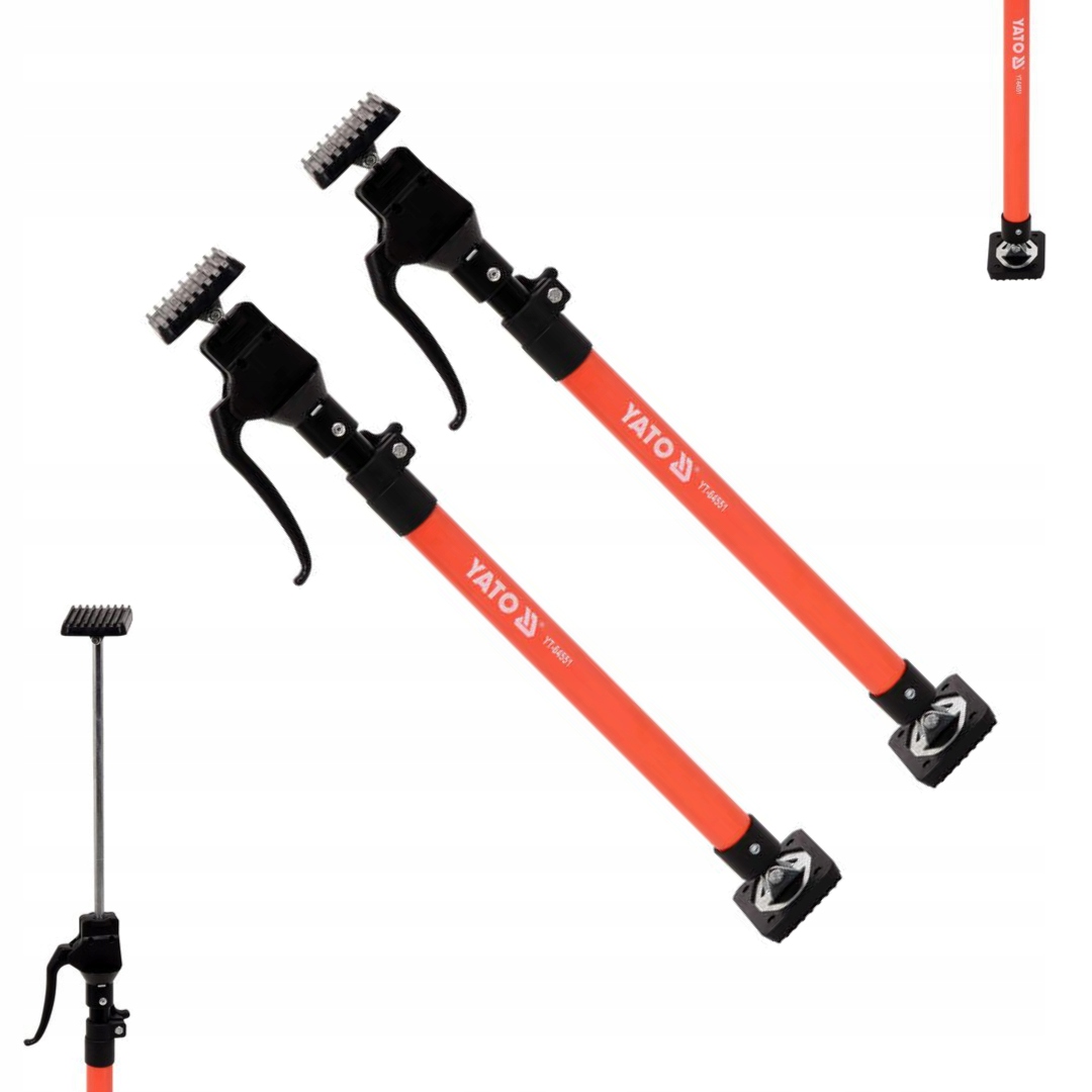 Кронштейны изготовлены из стальной трубы с широкими прорезиненными ножками, расположенными на стыках, адаптируясь к наклонам потолков или стен. Регулировка длины осуществляется в два этапа путем первоначального снятия с корпуса и фиксации пружинными штифтами, а также точного выдвижения и регулировки опоры с помощью кнопки рычага. Важной областью применения кронштейнов является эффективное раздвижение дверных коробок, необходимое при установке дверей или окон. Кронштейны Yato характеризуются очень прочным качеством изготовления, гарантирующим длительную и безопасную эксплуатацию.
