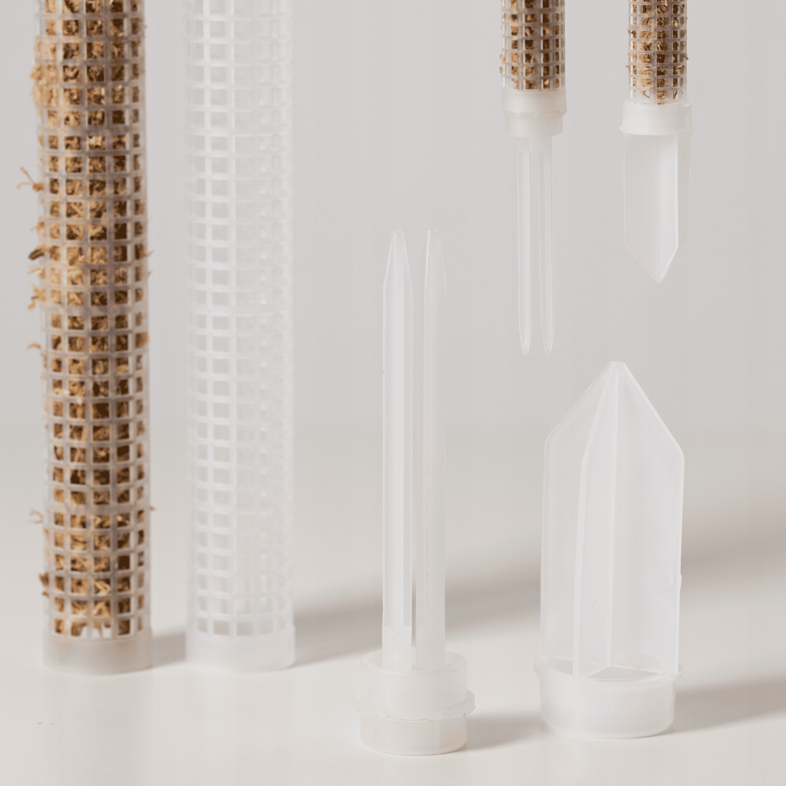 Он изготовлен из прочного, жесткого пластика с структурой сетки с петями с размерами 0,5 см. Он предназначен для скалолазания и эпифитных растений, которые выпускают небольшие воздушные корни и нуждаются в поддержке до UP, например: